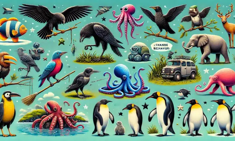 - الحصول على الغذاء: مثل استخدام الغربان للأدوات.